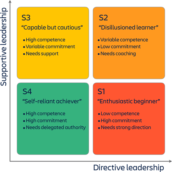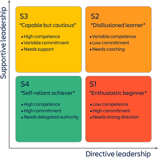 Situational leadership theory changes the conversation from “Who am I and how do I lead?” to “Who is the person in front of me, and what do they need from me in order to be successful?”
